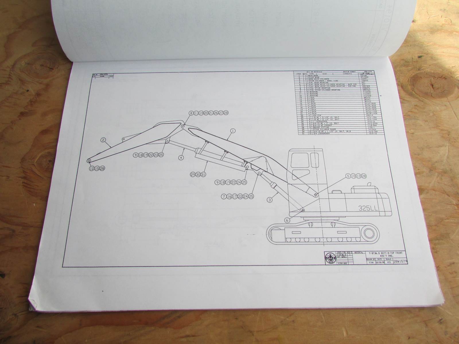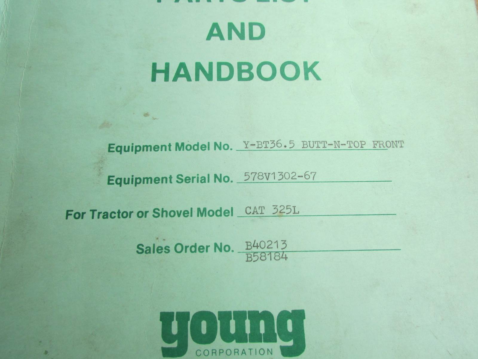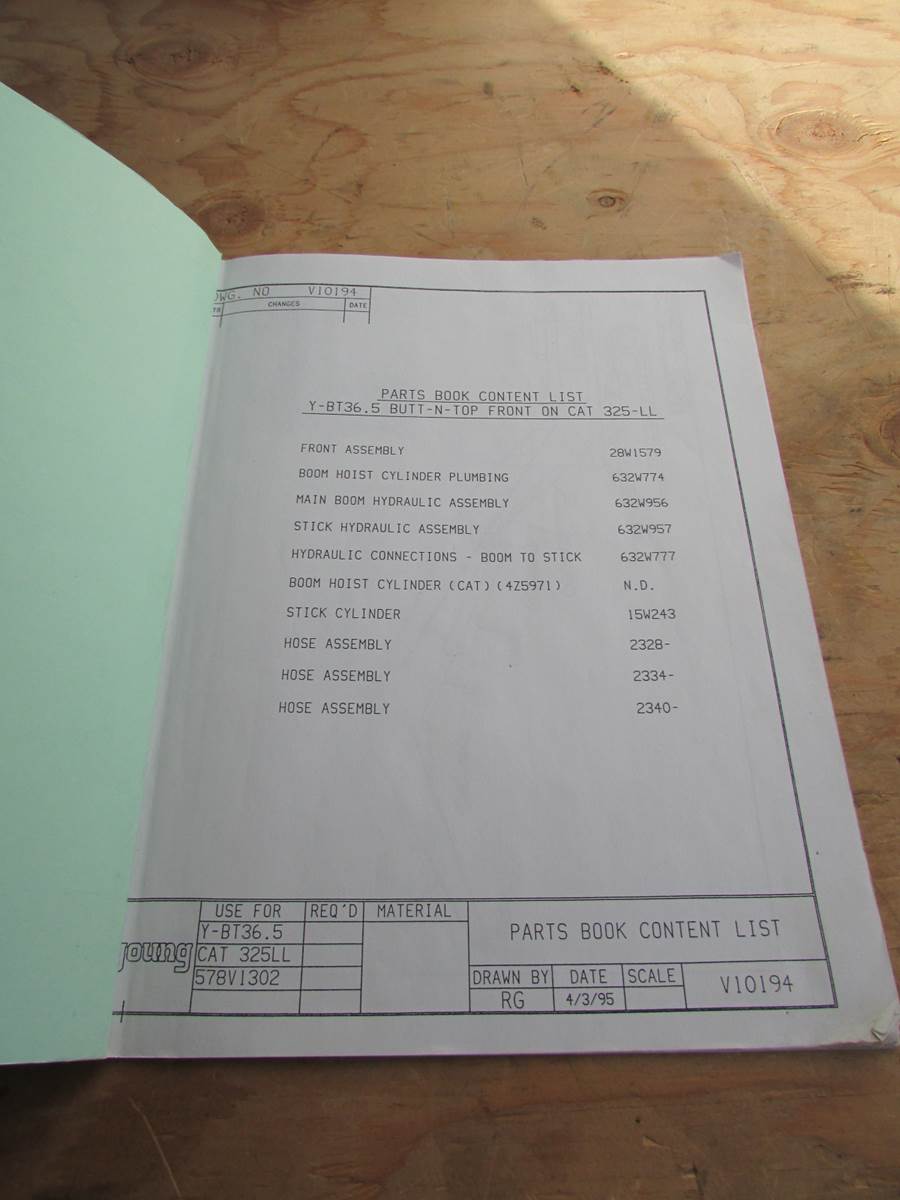 Young Caterpillar 325L Butt N Top Parts Book